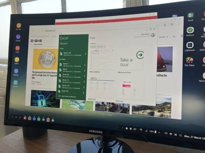 Samsung has completely redesigned the Android UI so it is optimised for use with keyboard and mouse and can handle those familiar multiple resizable windows, contextual menus and a desktop web browser.